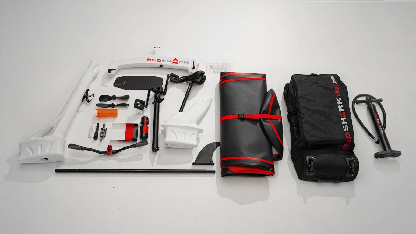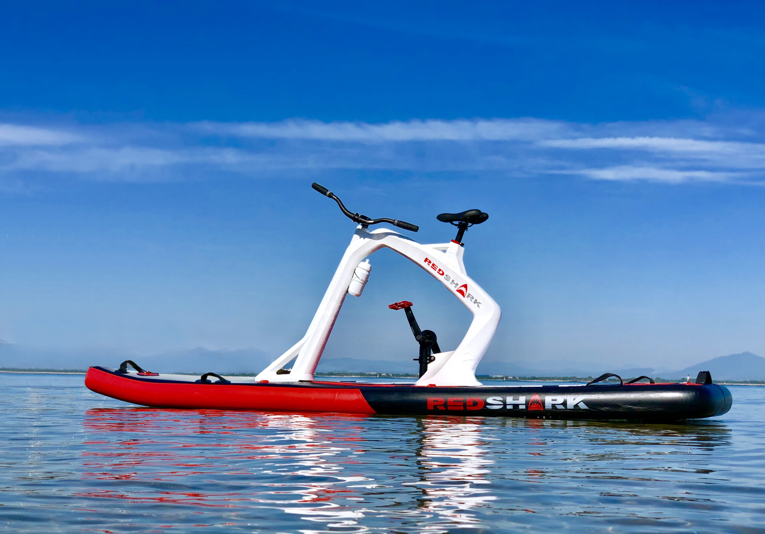 Inner-core fiber reinforced inflatable board (13’x3′) with Red Shark graphics