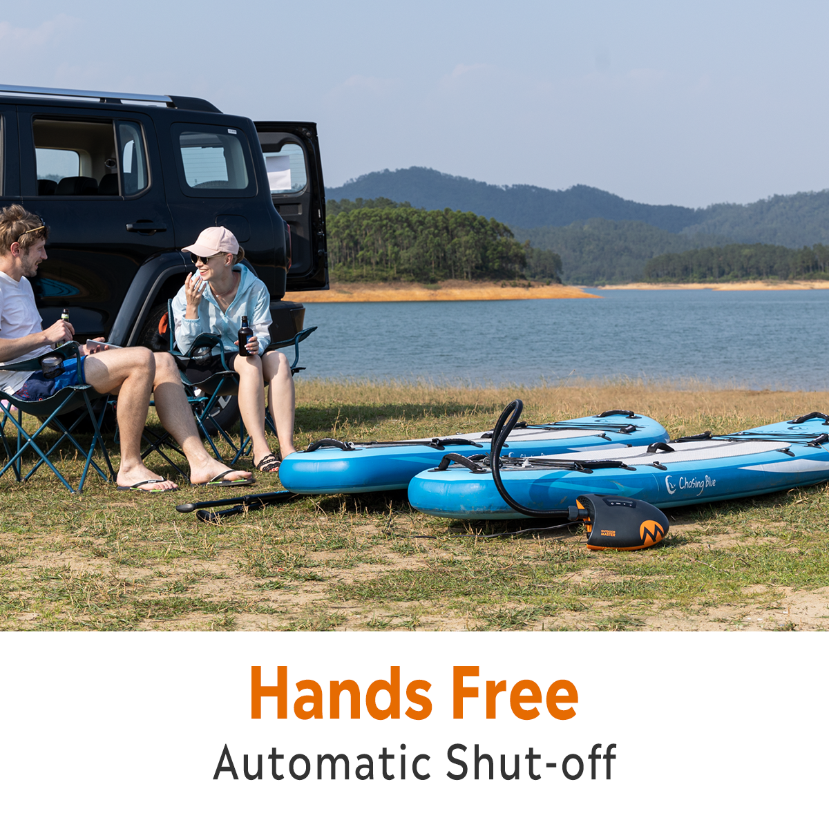 It will shut off automatically, when the board is pumped up to the preset PSI. Save your time and make your hands free. Pumping has never been easier!