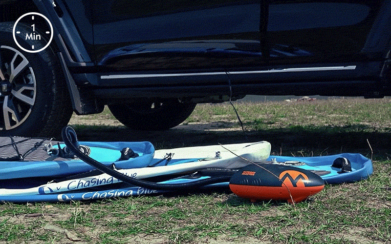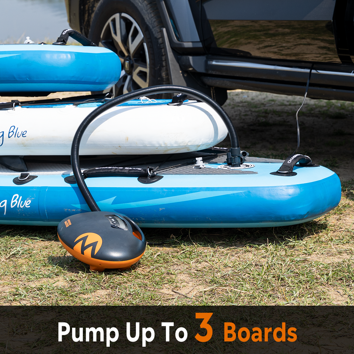 An electric paddleboard pump that Inflates 3 boards in one go – inflates to 20PSI